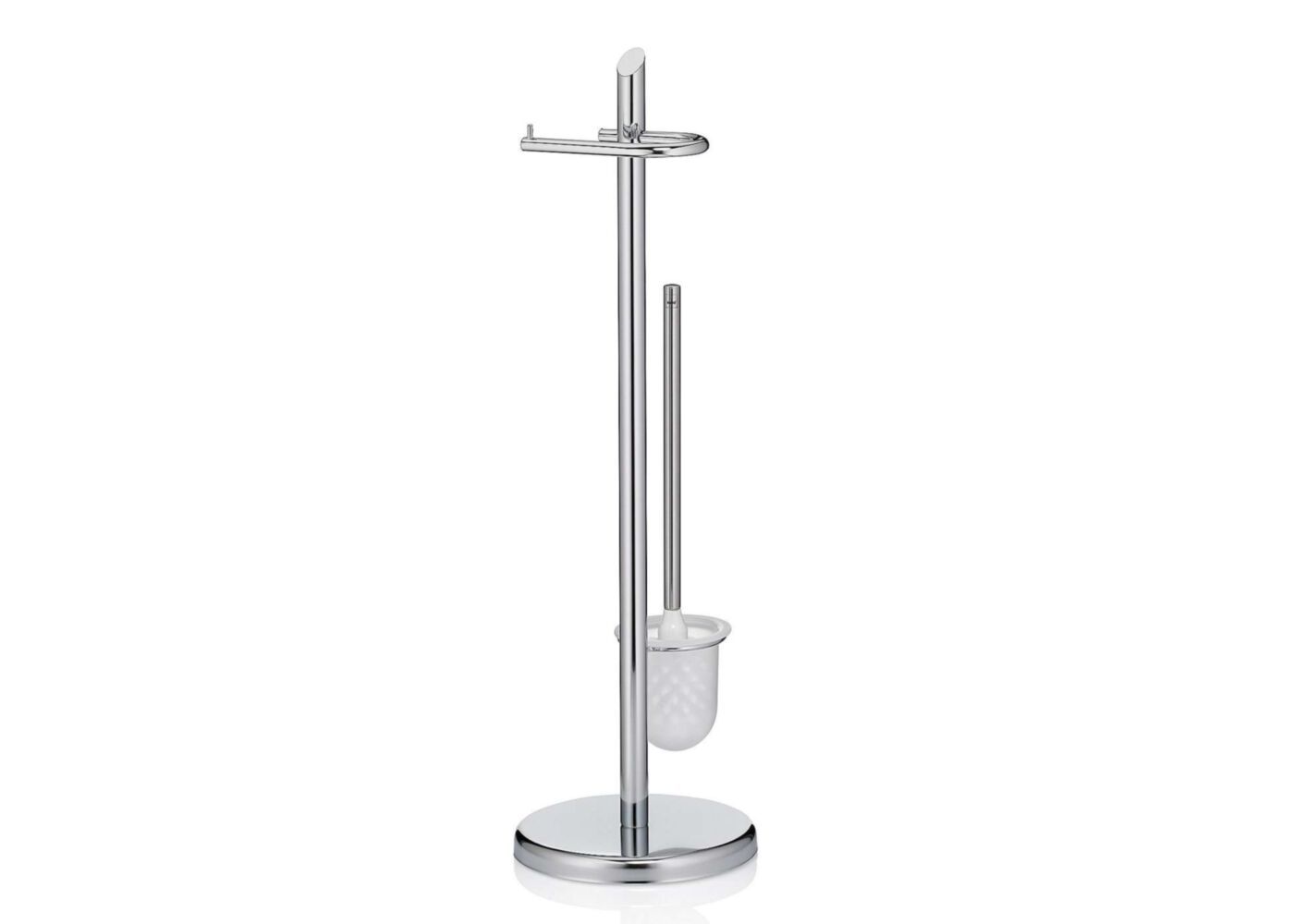 De Ken toiletset van metaal, in zilver, glanzend verchroomd, past bij vele inrichtingsstijlen.