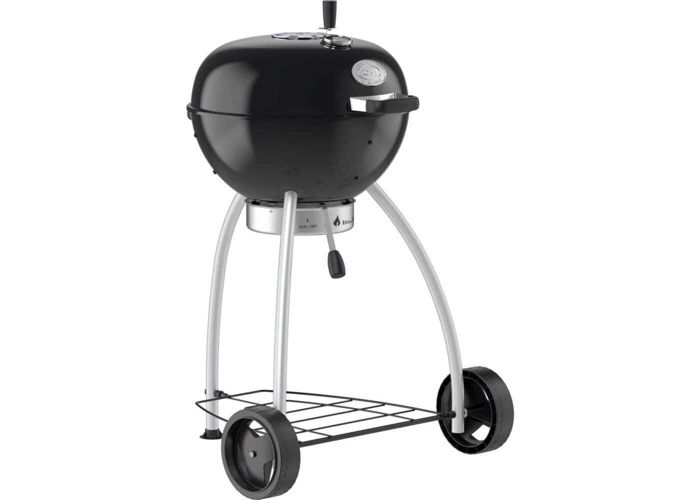 De Rösle No 1. Belly F50 heeft alles wat je van een houtskoolbarbecue mag verwachten: een ruim grillrooster, dekselthermometer en ventilatieroosters.