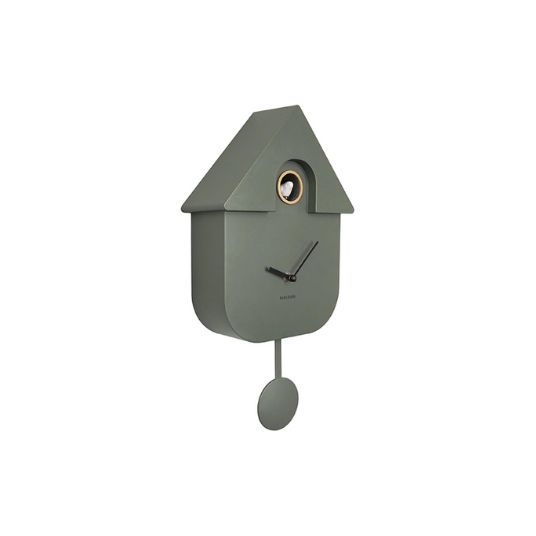 Kies de Cuckoo wandklok in het groen voor een mix van traditie met een moderne twist. Het design van deze hedendaagse koekoeksklok is strak en het vogelgeluid is vriendelijk. Breng een vleugje natuur in je huis met deze wandklok. Je hoeft je geen zorgen te maken dat de koekoek je 's nachts wakker maakt; de klok is stil tussen 22:00 en 06:00 uur.