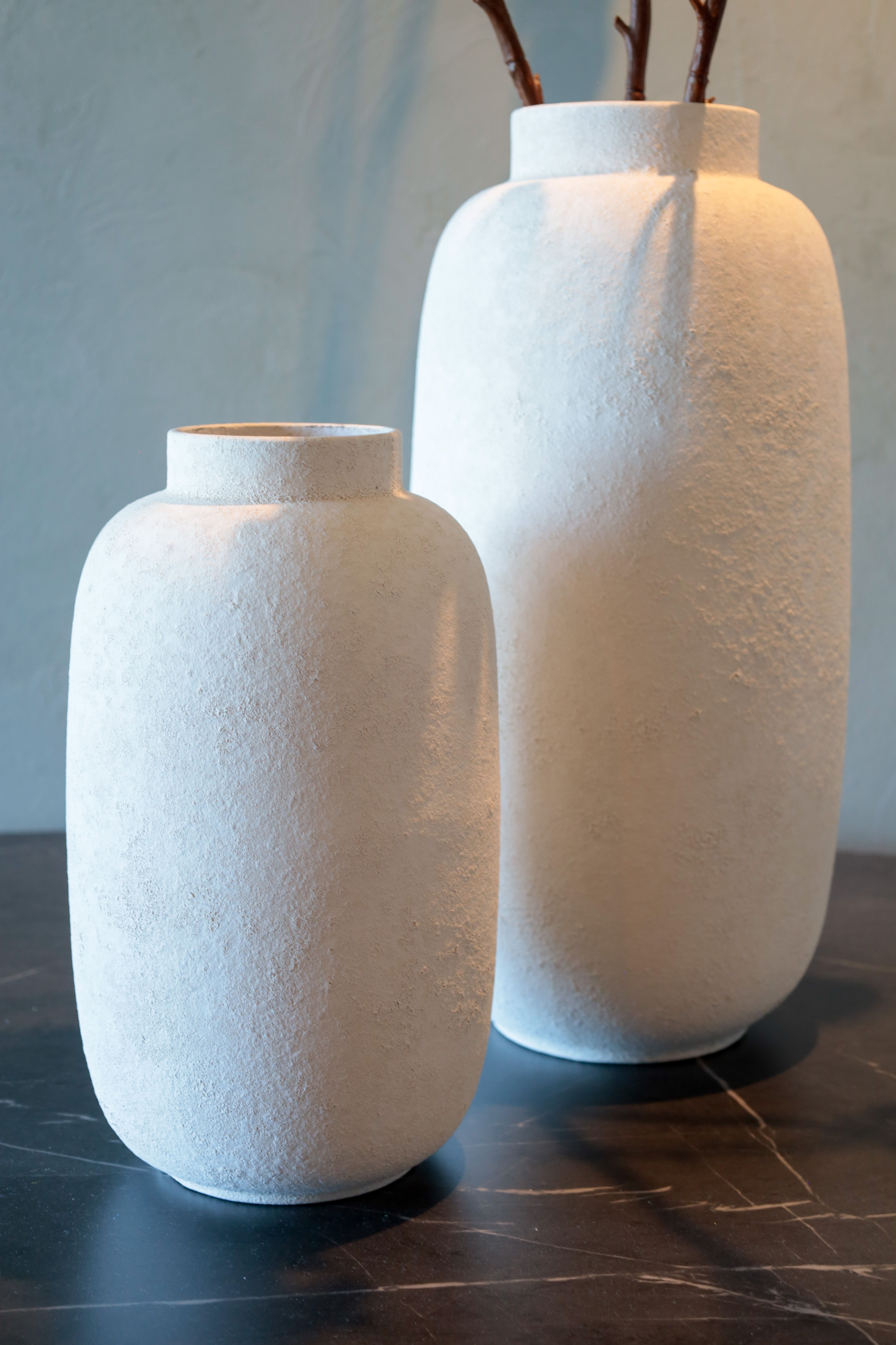 Deze stoneware vazen met hun rustieke ruwe oppervlak zijn onmisbaar in elke setting.