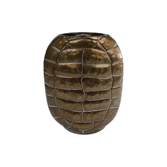 Deze metalen Turtle vaas past helemaal in de interieurtrend.